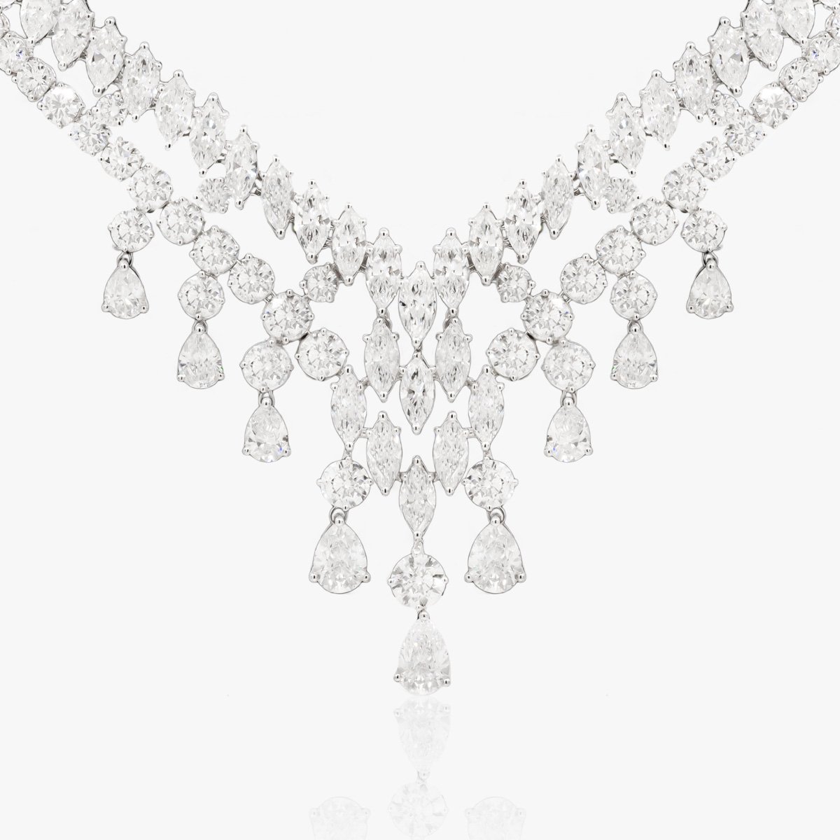 A high jewellery necklace crafted from a stunning combination of marquise, round, and pear-shaped solitaire diamonds. Each diamond is GIA certified, with exceptional brilliance and clarity, making this piece a timeless symbol of elegance.