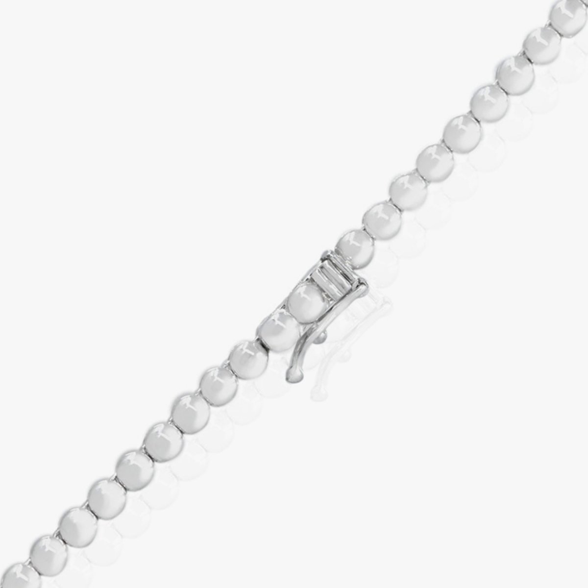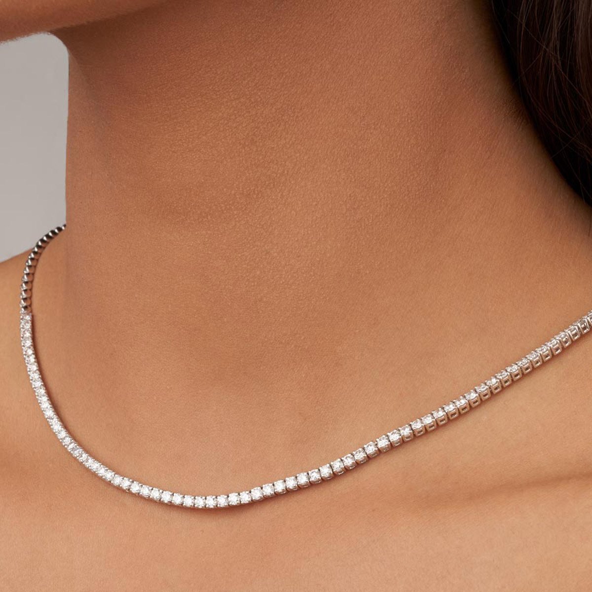 The Classic Tennis Necklace, featuring round-shaped diamonds. This petite necklace is ideal for layering or wearing alone as a delicate statement piece.