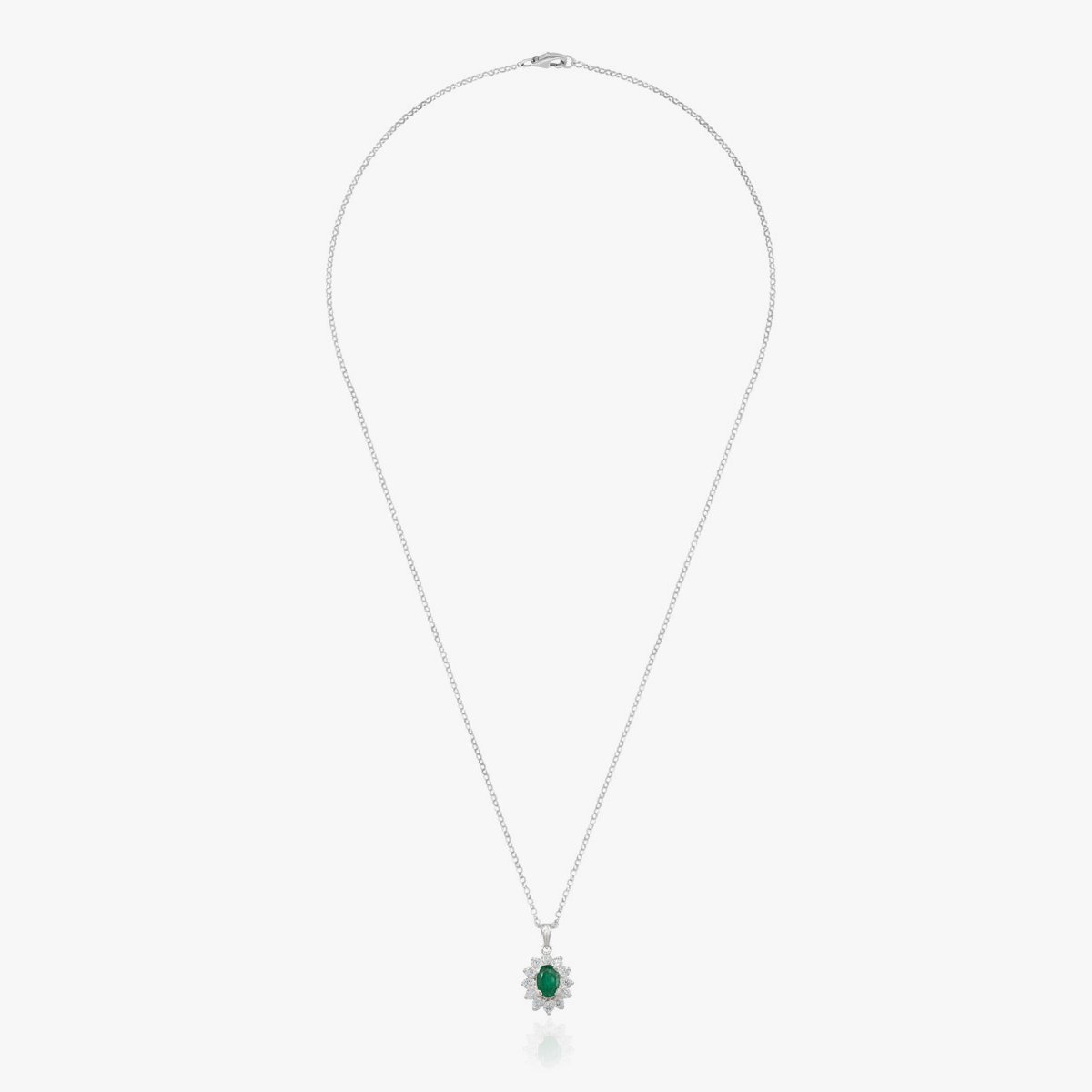 Featuring an oval-shaped green emerald at its center, surrounded by round-shaped white diamonds. This piece embodies the lush beauty of emeralds, making it a perfect for any occasion.