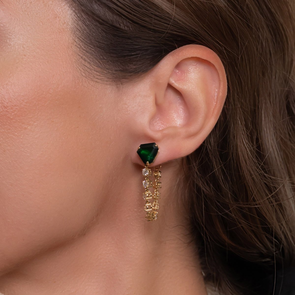 At the center of these earrings lies an oval pigeon blood ruby, surrounded by marquise-shaped white diamonds. The intense red hue of the ruby, paired with the brilliance of the diamonds, makes these earrings a majestic statement of luxury.
