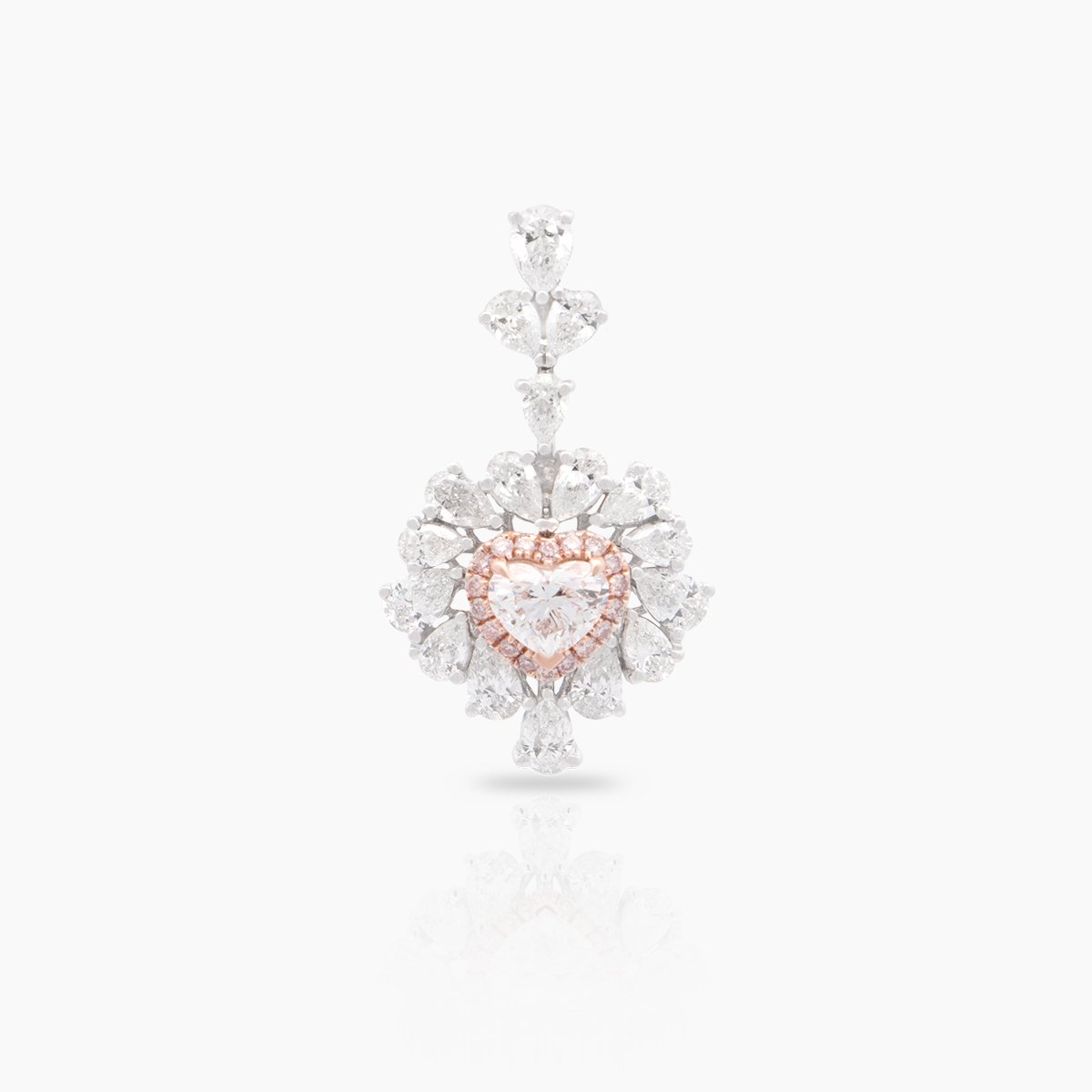 A reimagined Tamur featuring heart-shaped diamonds, studded with pink diamonds, and accented by pear-shaped side diamonds. Crafted from GIA-certified natural diamonds of the finest quality, this piece is a testament to refined craftsmanship.