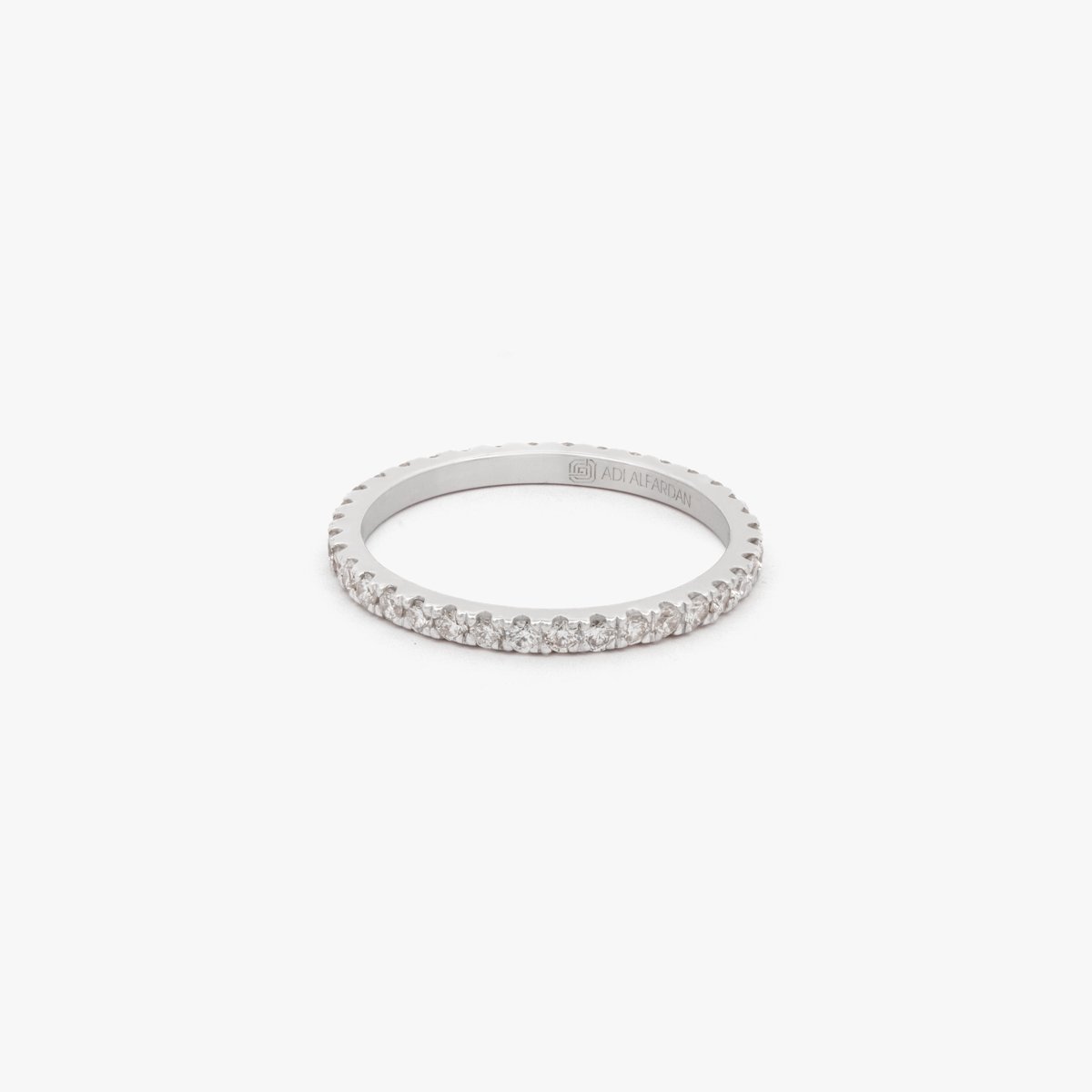 A full-pave band of round diamonds, encircling the finger with endless brilliance.