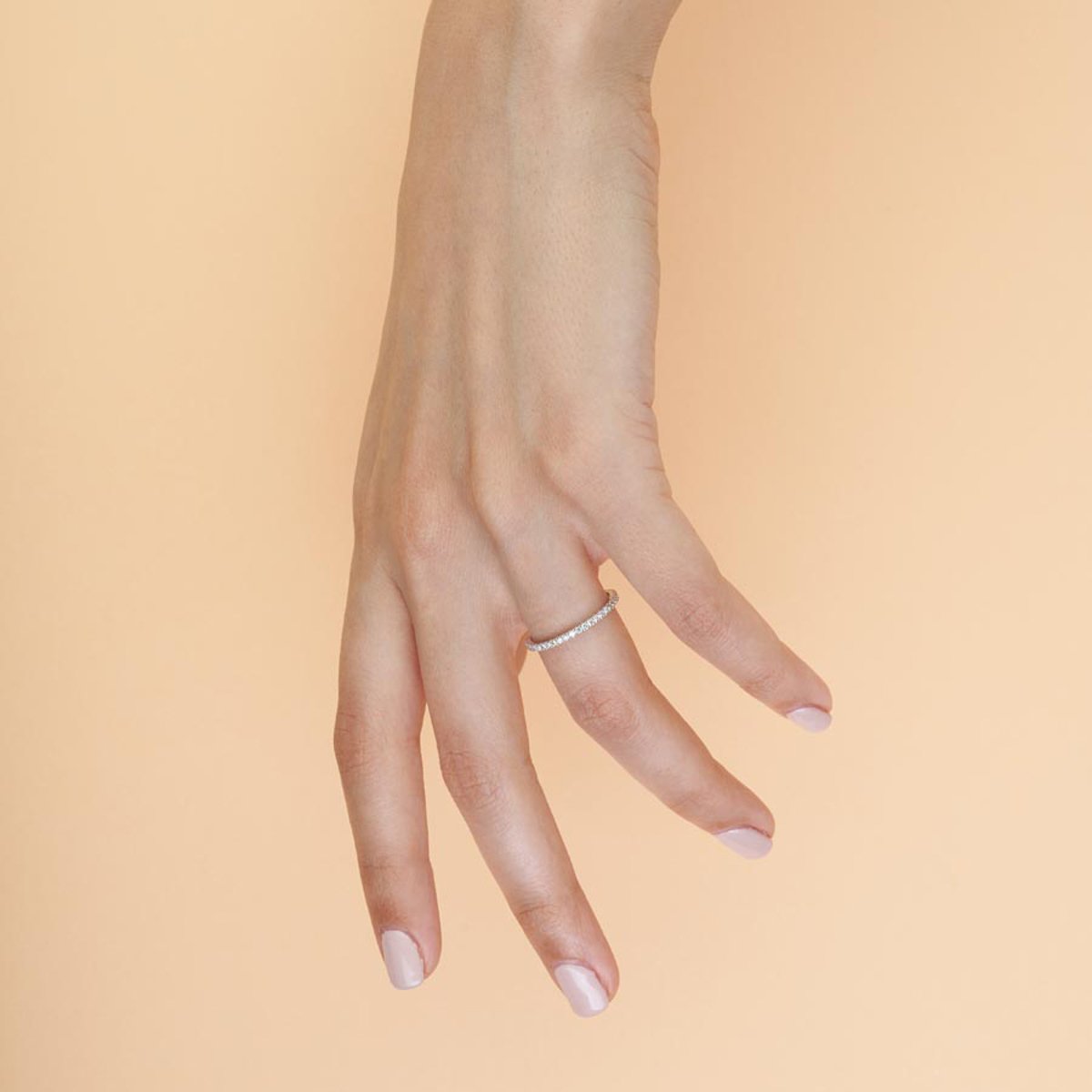A round diamond eternity band, symbolizing endless love and timeless beauty.