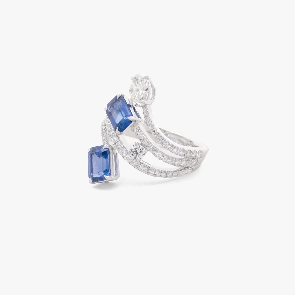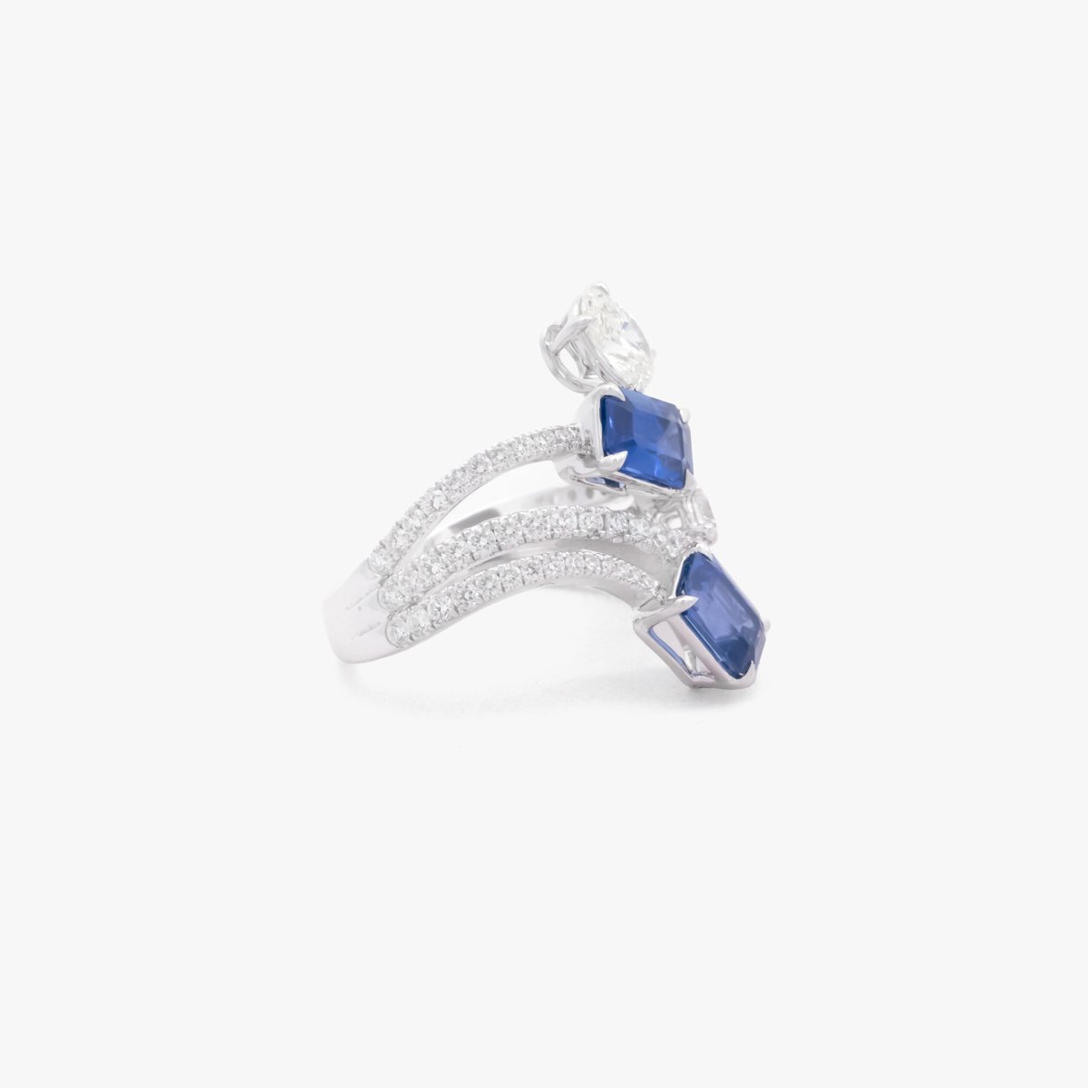 A captivating blue sapphire surrounded by a constellation of natural diamonds, designed for an unforgettable statement.