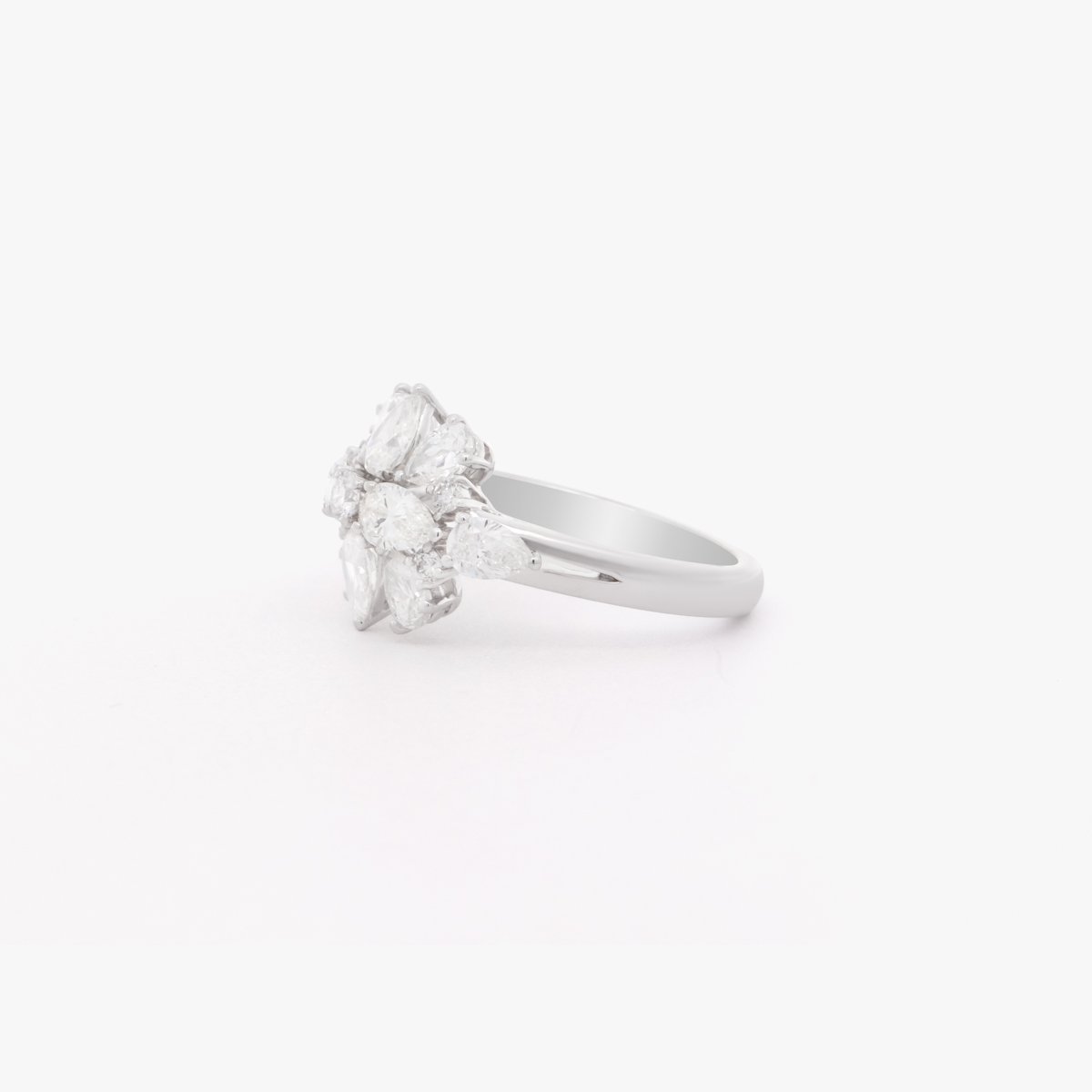 A bold cocktail ring combining pear and round-cut natural diamonds for a stunning effect.