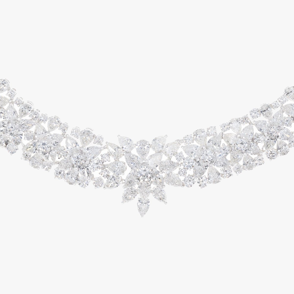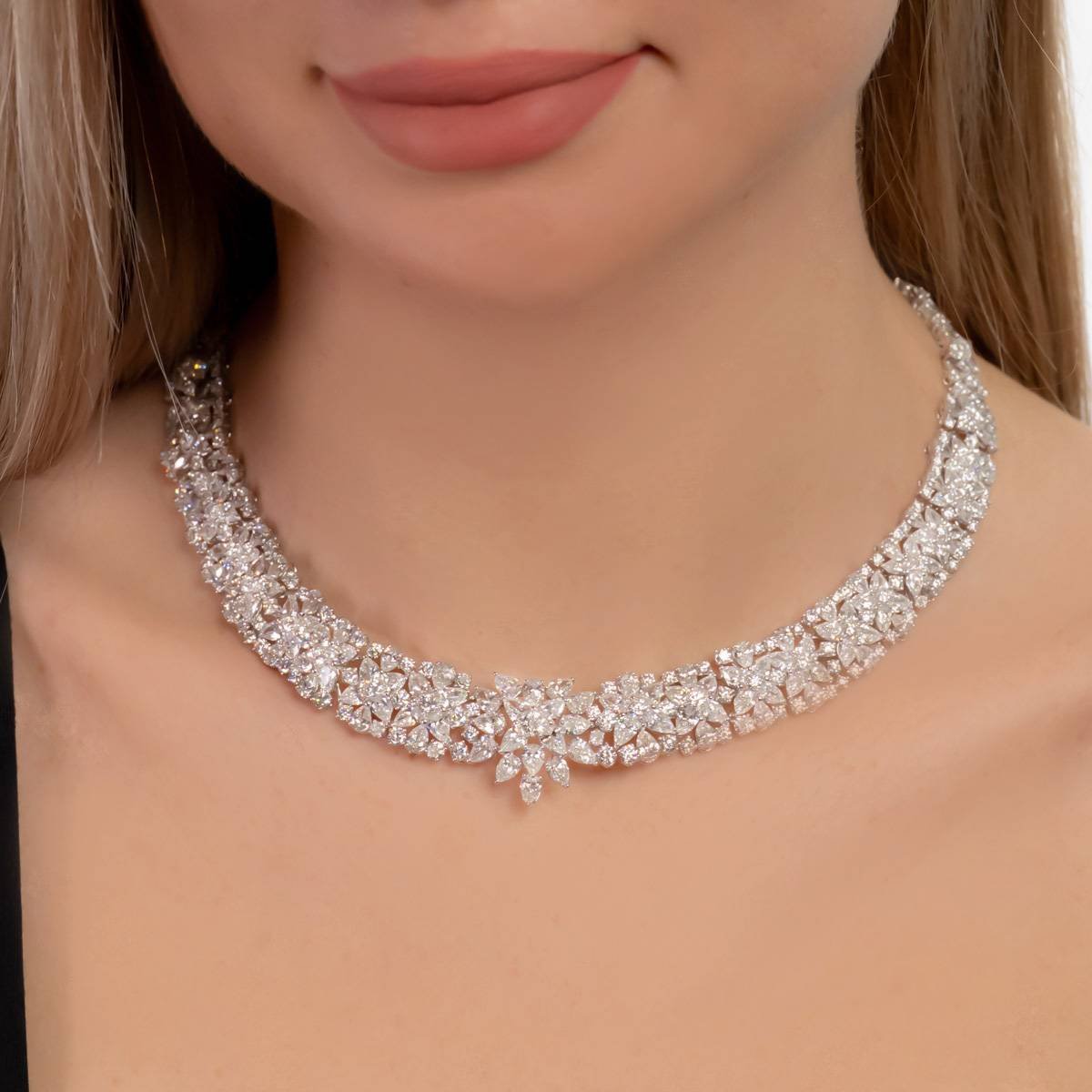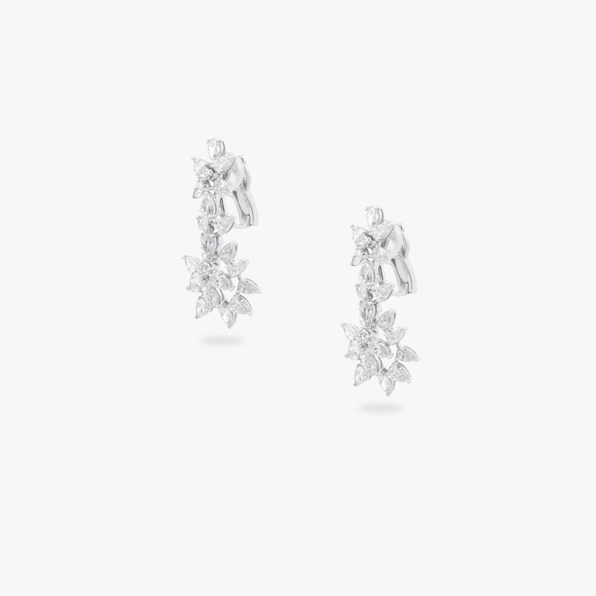 A mesmerizing interplay of pear and round diamonds, where the centerpiece forms the illusion of two overlapping stars. Includes a necklace and earrings for an ethereal presence.
