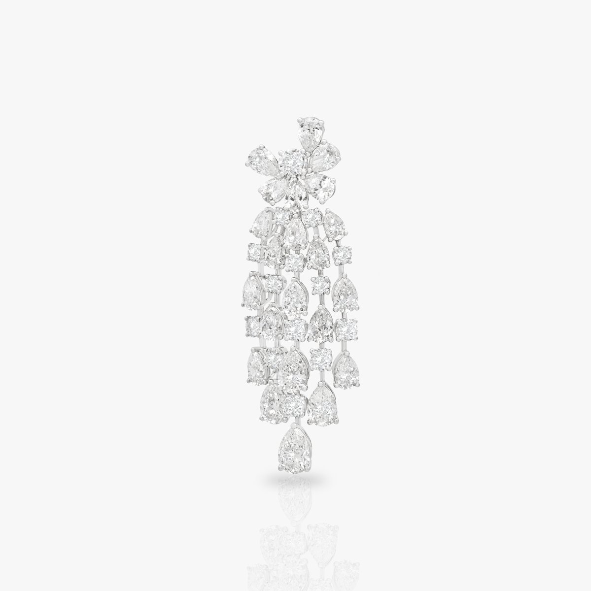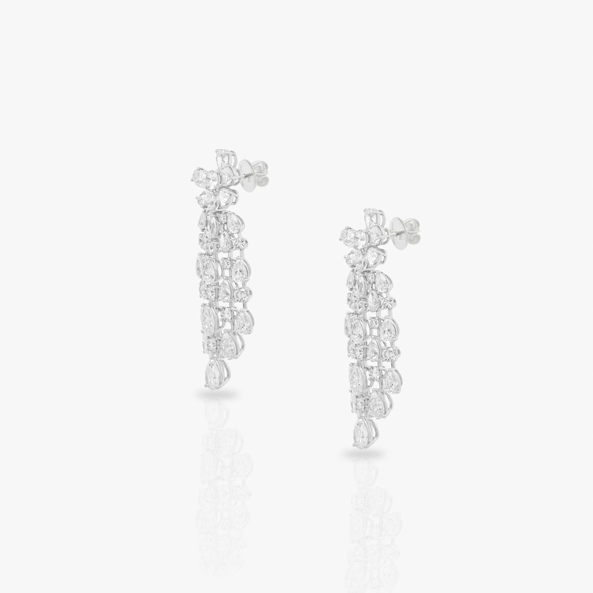 Exquisite chandelier earrings made of pear and round cut natural diamonds. Each diamond above 0.3 carats is GIA Certified, ensuring the highest quality.